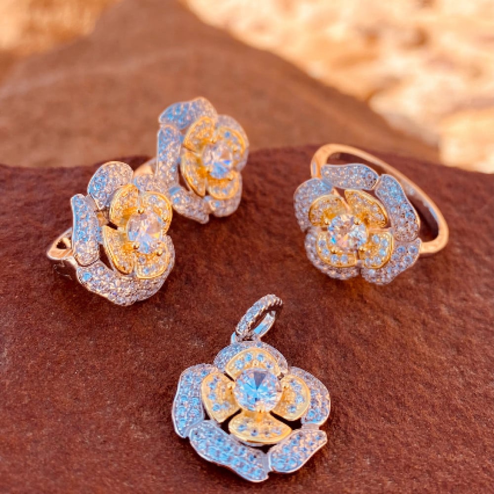 نصف طقم فضة بزركون مطلي