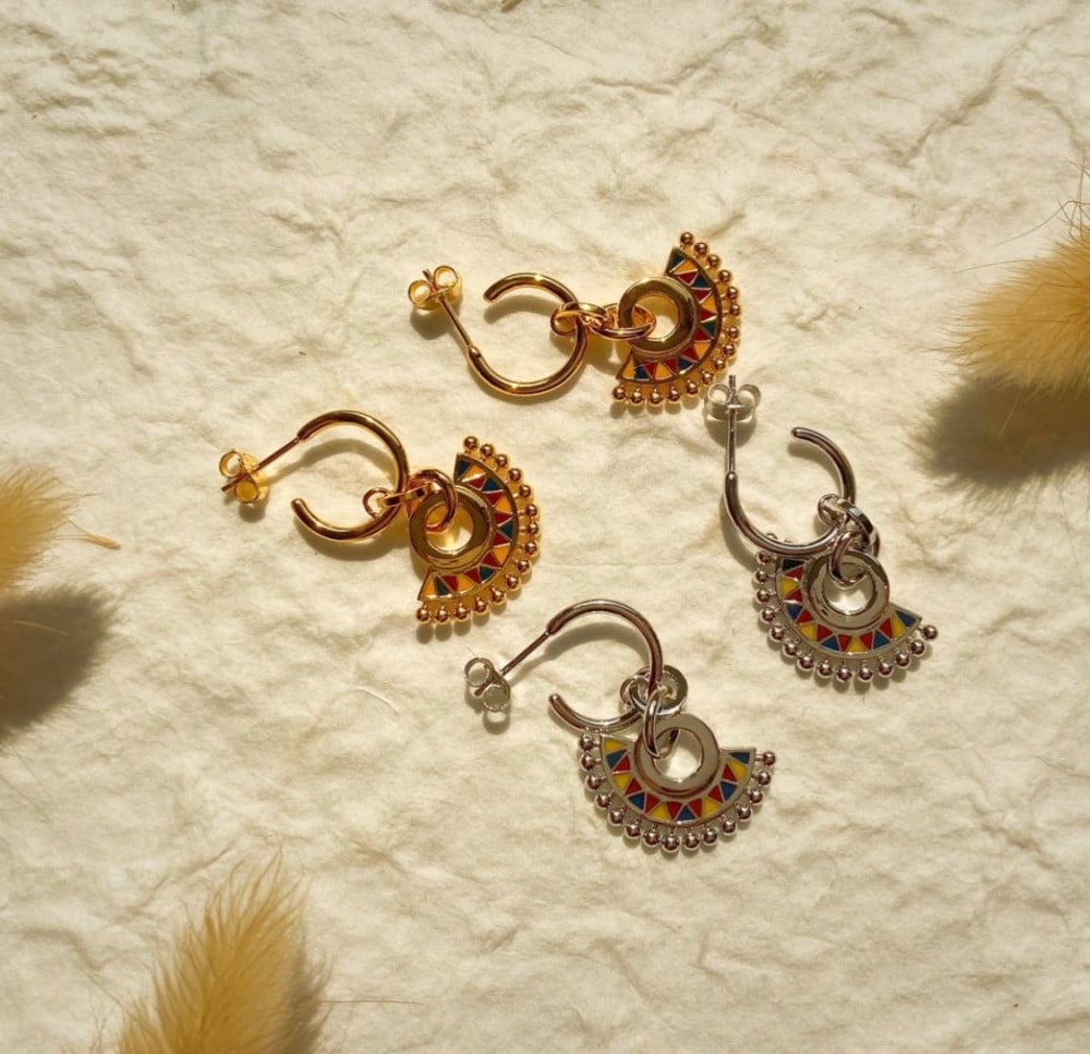 - حلق مميز بتصميم مستوحى بشكل جميل من الفن السعودي التقليدي للقط العسيري.