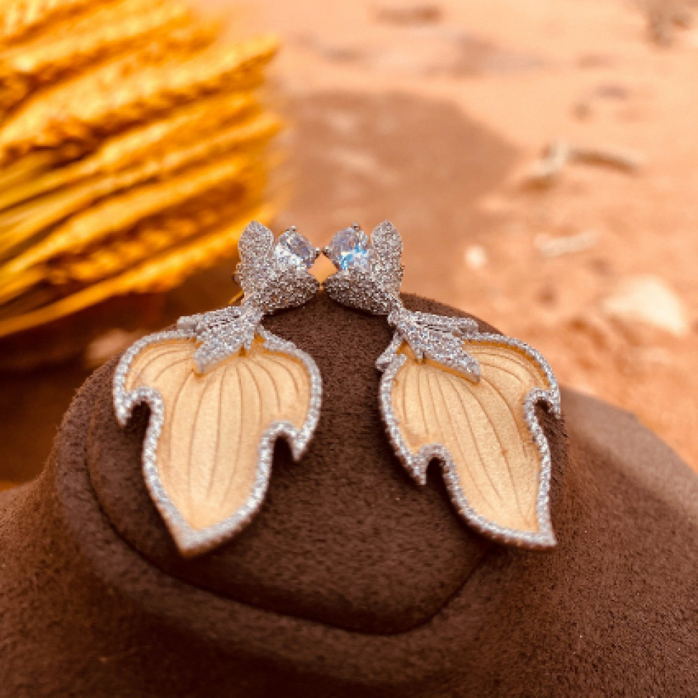 - حلق بتصميم مميز مرصع بأحجار الزركون اللامعة.