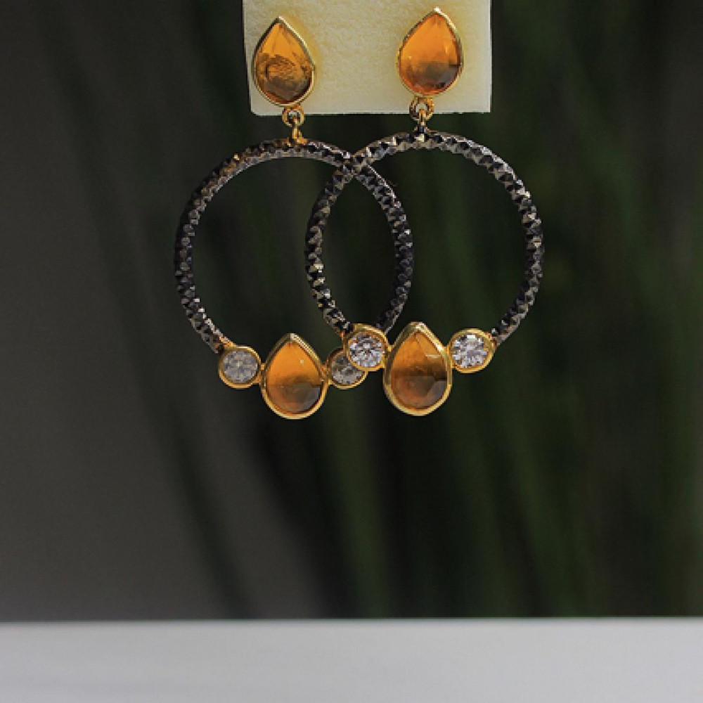 حلق فضة عيار 925 مرصع باحجار ملونة