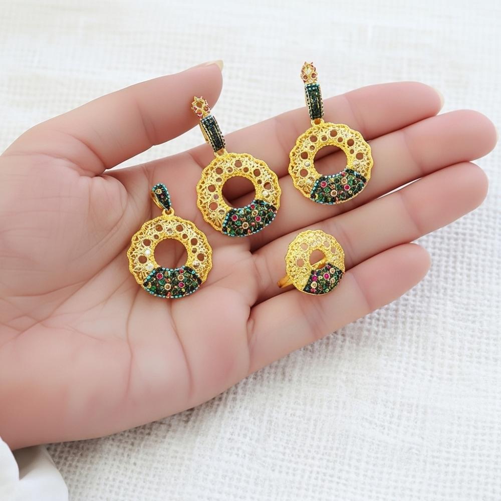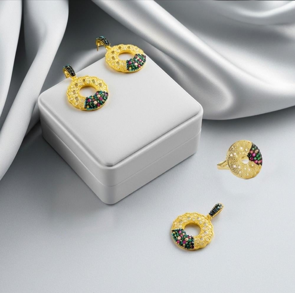 طقم فضة مطلي بزركون ملون اخضر
