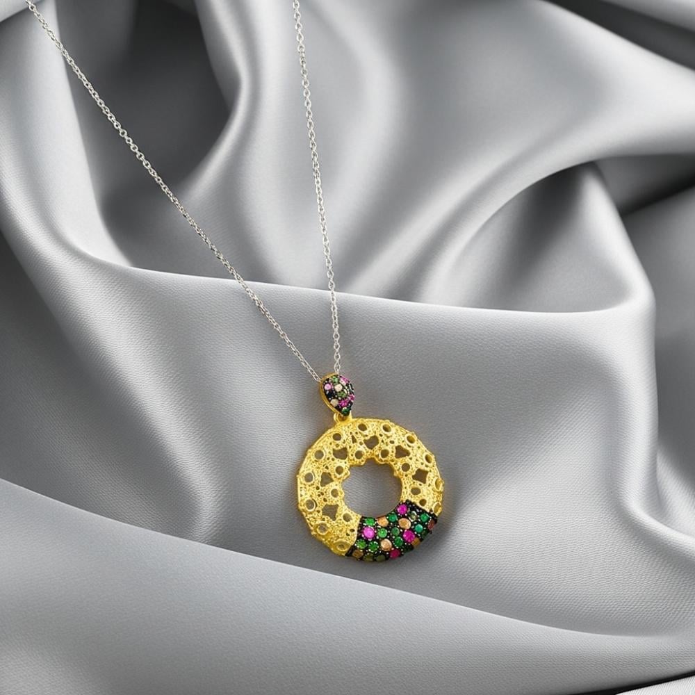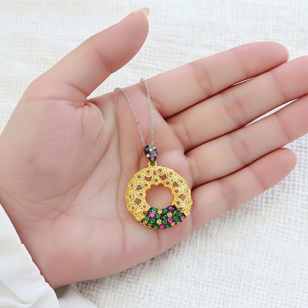 - تصميم عصري ومميز على شكل دائرة مرصع بحبات الزركون اللامعة باللون الاخضر الجذاب.