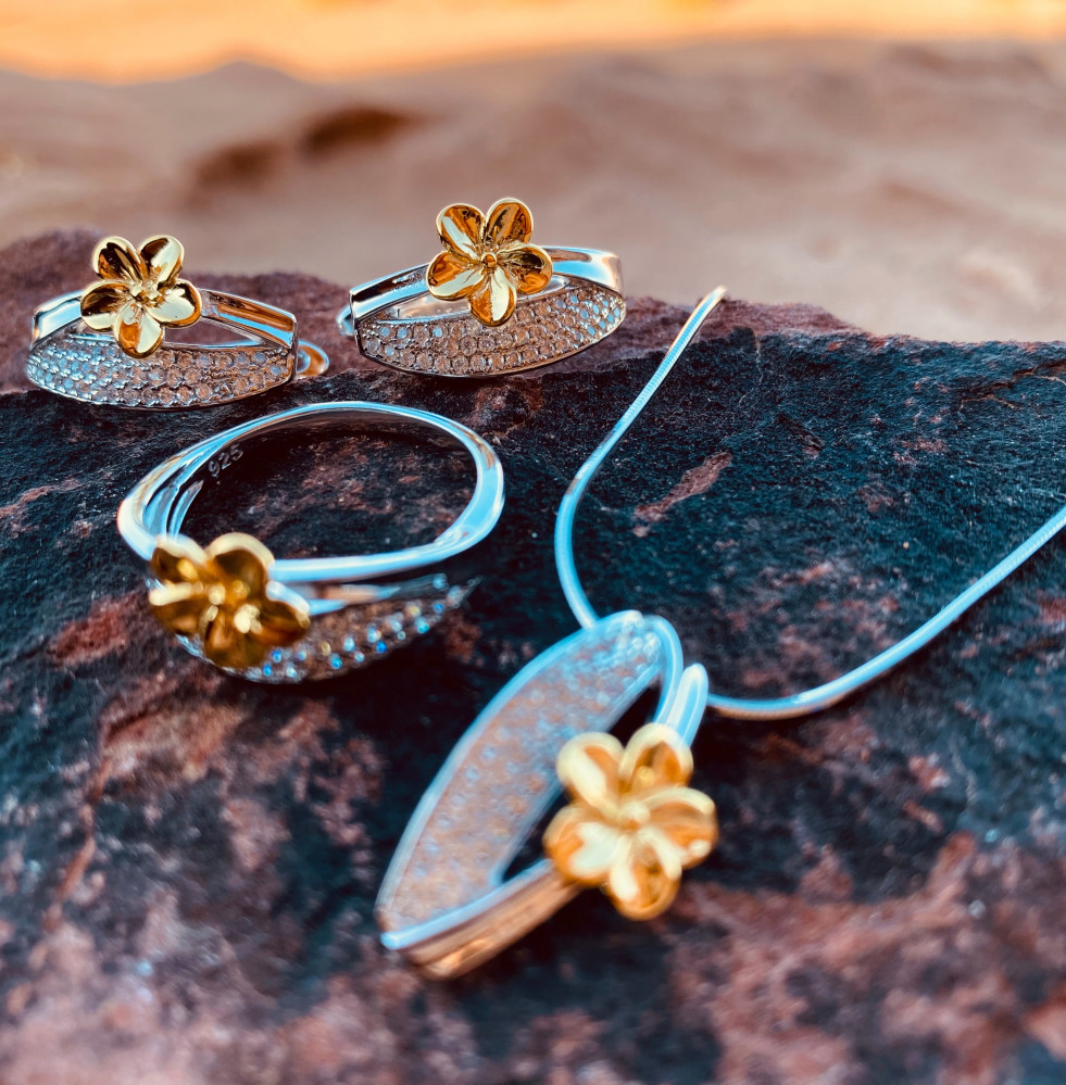 - تصميم ناعم على شكل وردة أنيقة مرصعة بحبات الزركون اللامعة.