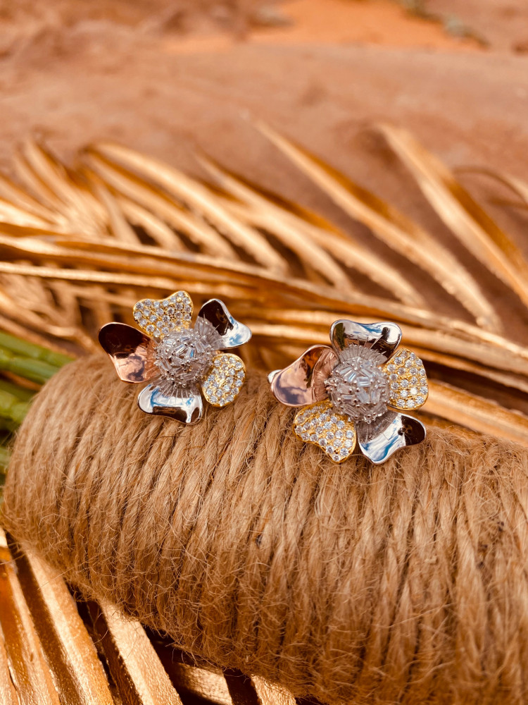 - تصميم عصري على شكل وردة أنيقة بتفاصيل دقيقة مرصع بحبات الزركون اللامعة.